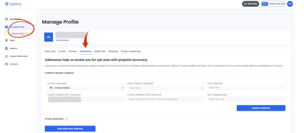 After signing up, we recommend navigating to the Manage Profile page and updating your profile. The more info you provide, the better we’ll be able to find your profiles. For free plan users, this means the View links will be of better quality, and you can view more of them. For paid plan users, providing more information makes it easier for us to locate all profiles and remove them on an ongoing basis.