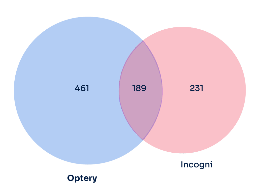 We compared Incogni’s list of the ~420 data broker sites it covers with Optery’s list of the ~650 data broker sites it covers, and also cross referenced that with the list of data broker sites in the California Attorney General’s Data Broker Registry. Out of the ~420 data broker sites covered by Incogni, only ~190 overlap with Optery and the California Attorney General’s Data Broker Registry. In other words, ~55% of the data broker sites Incogni covers are not what would be considered “typical” or the type of “usual suspects” data brokers that even the California Attorney General’s data broker registry tracks. In fact, since most of the sites Incogni covers are not even tracked on the California Attorney General’s data broker registry, they may be of questionable value to paying customers versus the data broker sites covered by Optery.