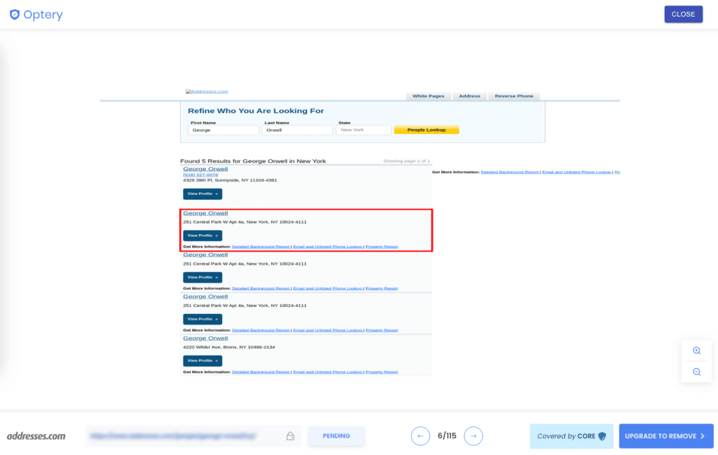 “Unlike any other product in this field, Optery doesn’t just state that your data was found, like IDX Privacy. It also doesn’t simply list the found data items, like DeleteMe. Rather, the report presents you with a screenshot of your actual profile data on the site.”